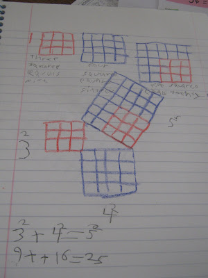 | And, yes, I know that the sketch that Sam made has an extra row on his 5 squared section...he might still be working on attention to detail, but he certainly knows what the theorem means and can picture what it means in his head. I am satisfied. |
