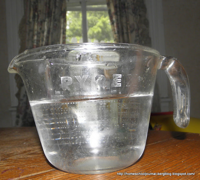 As you can see, it is just a hair above the line in this cup. Now, put it in the freezer until it turns solidly into ice.