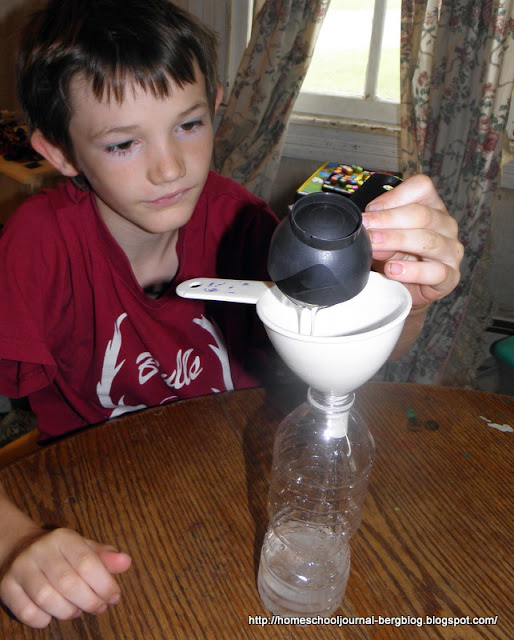 When you are ready, pour the yeast mixture into the soda bottle through a funnel
