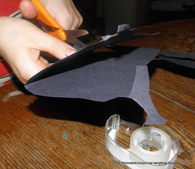Today we did a math lesson in symmetry and made Halloween decorations at the same time.