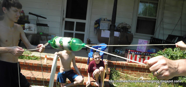 Cut a six-pack holder rings apart to form four, two-loop handles. (We needed to vary how long our ropes were depending on how large an arm span the kids had, so we didn't really use these and they aren't really needed.)