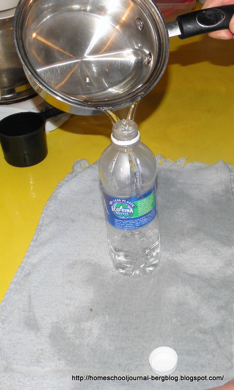 Place the cap on the bottle as quickly as you can to trap in the hot air.
