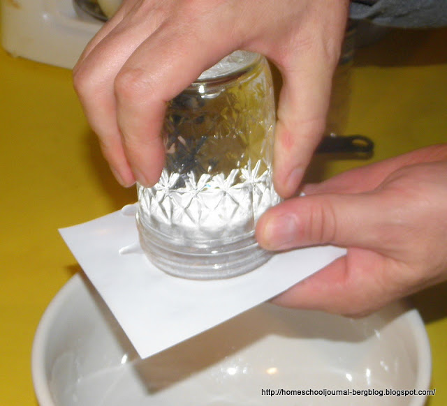 Standing over the sink or bowl, hold the card against the jar as you turn it upside down.