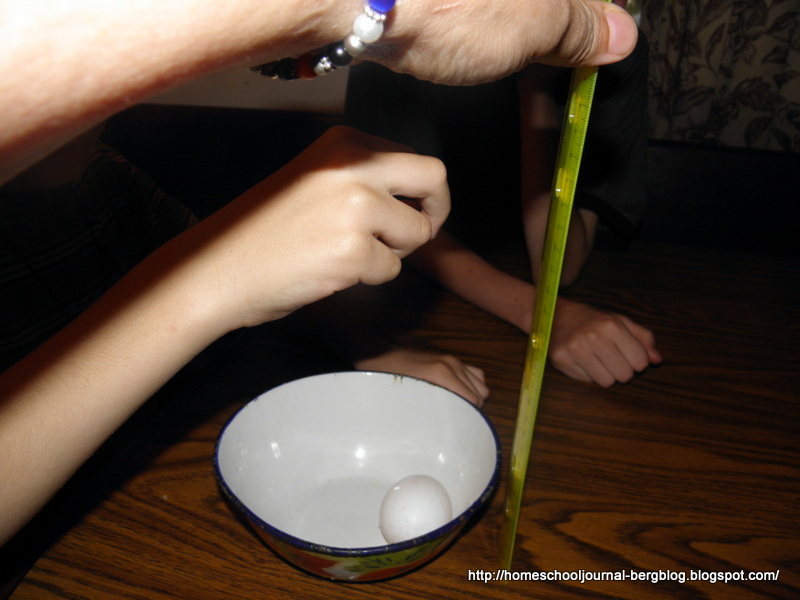 To demonstrate the difference speed can make in terms of impact craters, you can use a penny, a few eggs, a bowl and a ruler (yardstick would be even better, but we don't have one.)