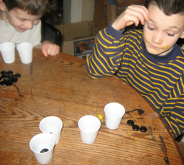 Next we practiced counting forwards and backwards in base 6 using cups and beans.
