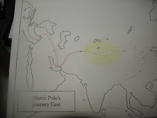 We also traced the Polo's route so far from Venice through Arabia and Persia. We colored the Persian deserts. We also labeled Venice and Acre..