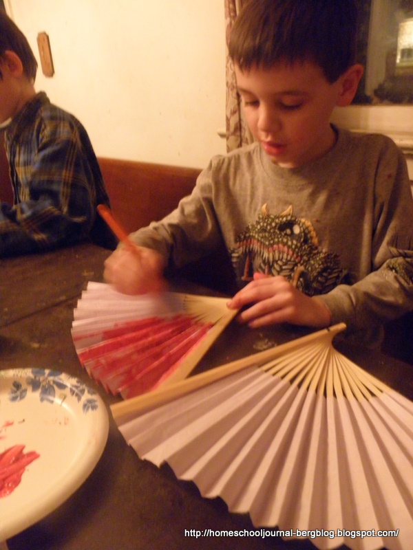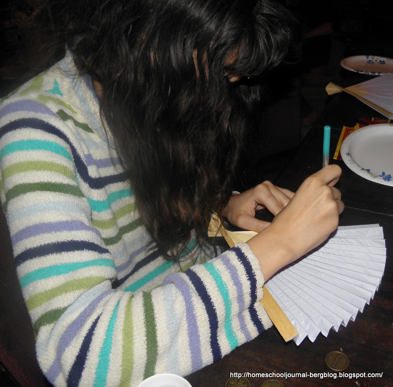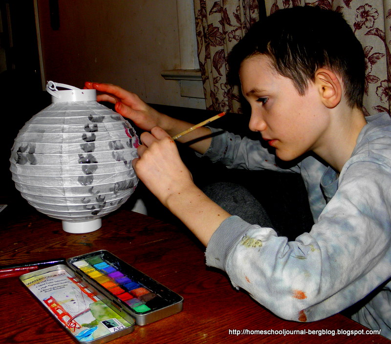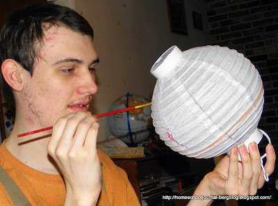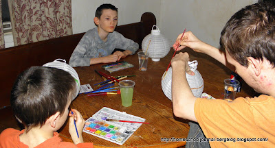 After dinner we painted some hanging lanterns that we found in the wedding section of the dollar store.