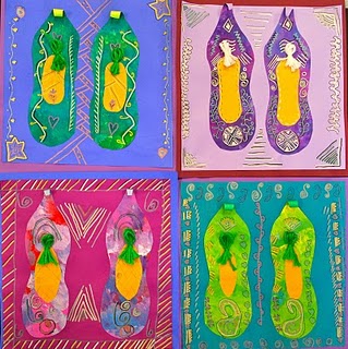 Another interesting project you can do is to make pictures of Indian Slippers. Handmade shoes, slippers and sandals are popular in Indian Bazaars. Traditional cobblers stitch the shoes using leather and fabric. You can create these Slippers of India from Painted Paper, using painted paper, metallic markers and yarn for tassels.