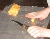 Divide the dough into 4 equal portions. Roll each piece of cookie dough into a cylinder about 8 inches long and 1 inch wide. Wrap the log in wax paper or plastic wrap and chill until firm, at least 2 hours or overnight.