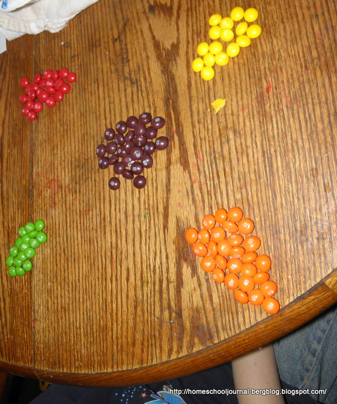 Then I ask them to put 1 more bean in each cup and I record while they count.